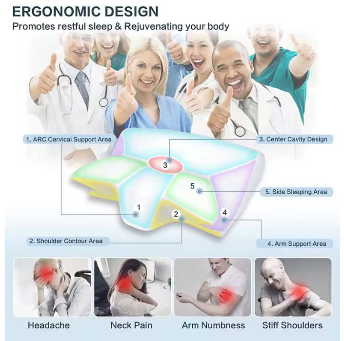 • Healthy Sleep Environment — This cervical pillow is designed to improve sleep posture, reduce snoring, and promote better airflow—contributing to restful, uninterrupted sleep. A perfect addition to any sleep routine seeking neck and shoulder pain relief, wellness support, or post-injury recovery.