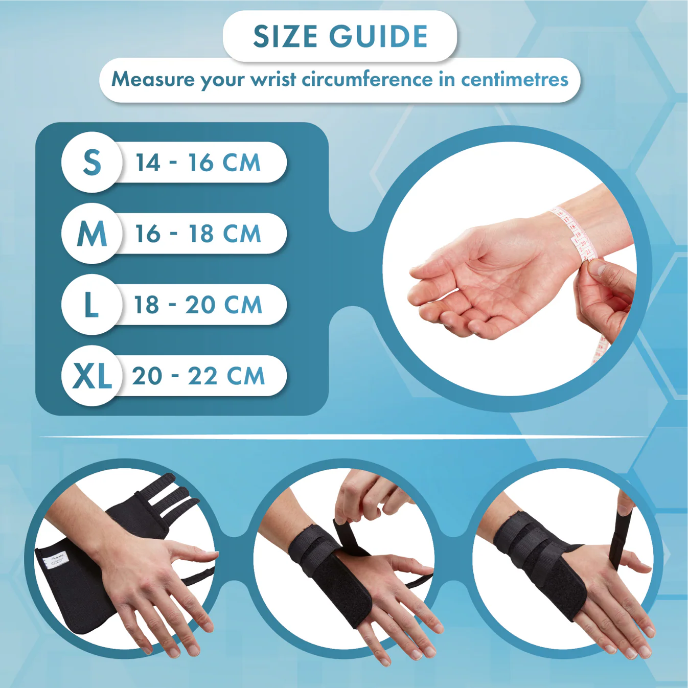 Measure your wrist circumference in centimetres, and select your size using the guide below. Please ensure you correctly choose the left or right variation for you.