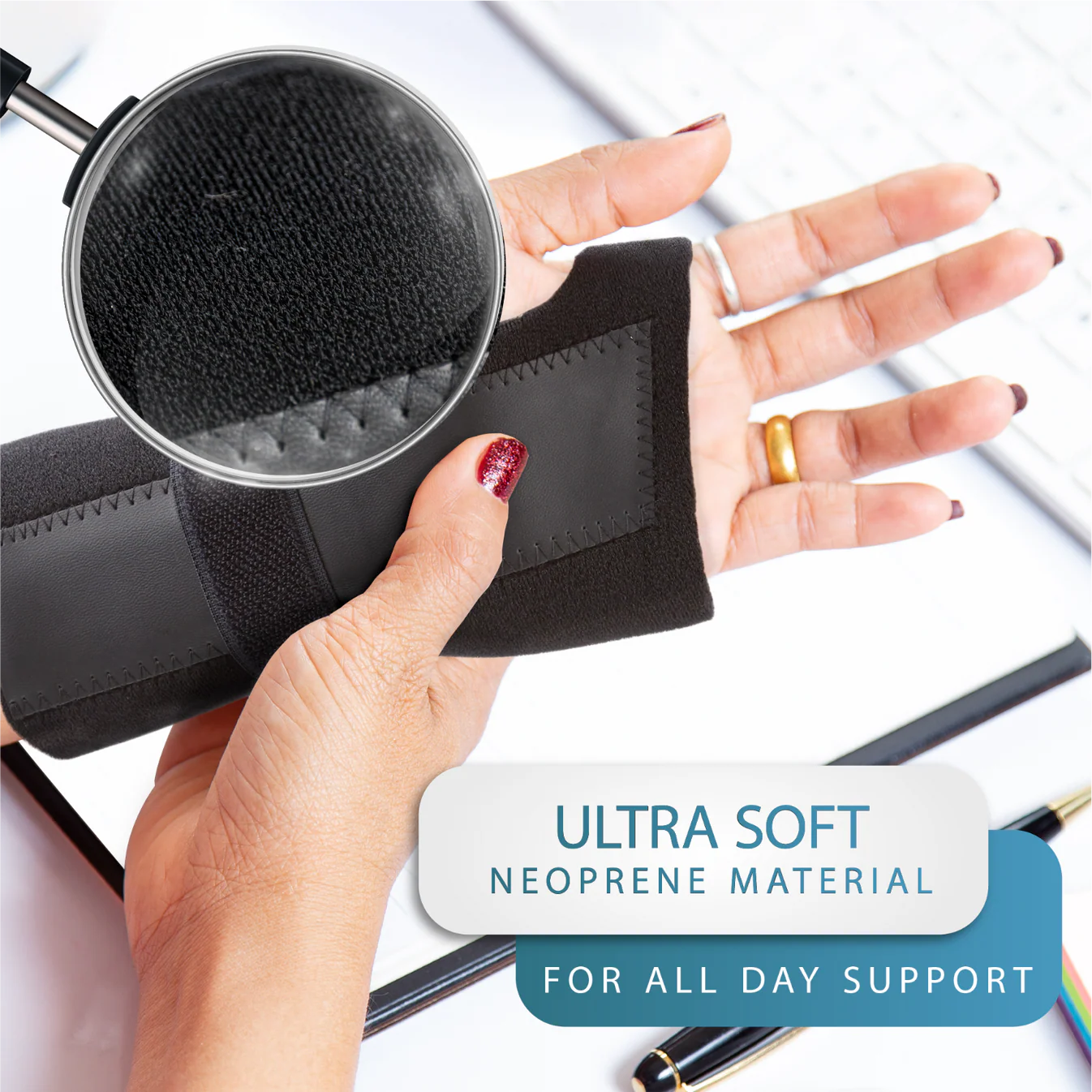 The neoprene allows for gentle compression to the whole wrist region for added reassurance and is ideal for heat retention that stimulates blood flow and speeds up the healing process.
