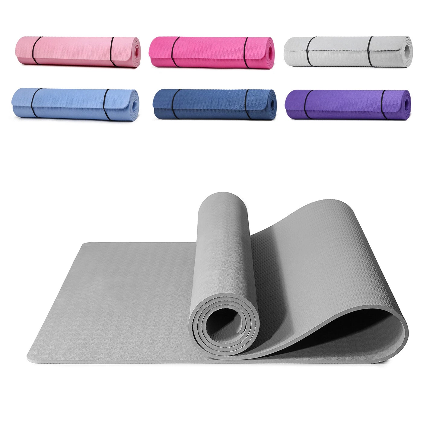 Description: 1.Non-Slip: TPE Mat is 72"X24" (183x61cm) wide mat ensures comfort for all-purpose. With high density TPE material, premium mat comfortably cushions spine, hips, knees and elbows on hard floors 2.MOISTURE-RESISTANT & EASY TO CLEAN: TPE is a high density material which is fast-drying and more moisture-resistant than PVC to prevent you sliding during a sweaty workout. Wipe clean and air dry for easy maintenance. 3.LIGHTWEIGHT: Can be rolled up into a compact size. Great for taking to classes and working out wherever you go. 4.Non-toxic, Free from Harmful Phthalates DEHP, DBP, DNHP, BBP, DIDP 5.Versatile mat for Yoga, Pilates, abs, Sit-Ups, Gymnastic, Exercise, Party, Camping, Picnics, Sleepovers. {30-DAY NO HASSLE RETURNS & LIFETIME CUSTOMER SERVICE}